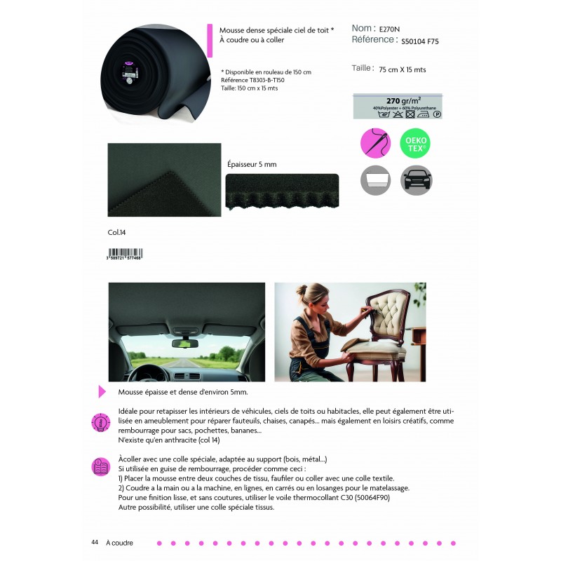 S50104 - E270N nähbarer Polsterschaum 270G/M2