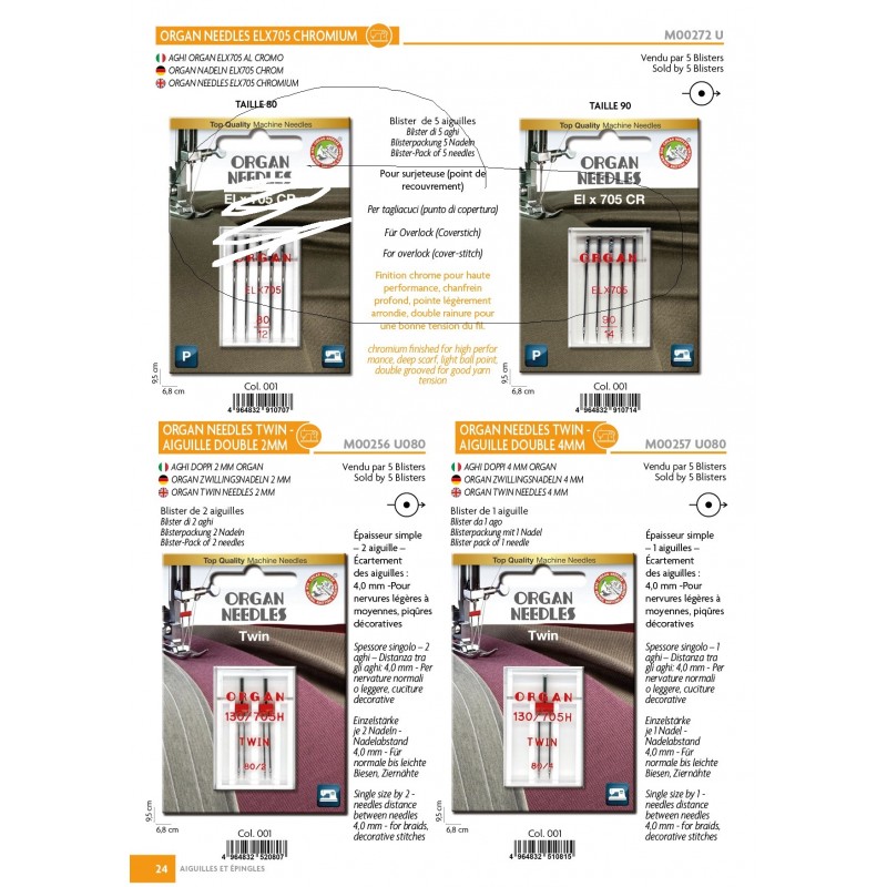 new ORGAN NEEDLES TWIN AIGUILLE DOUBLE