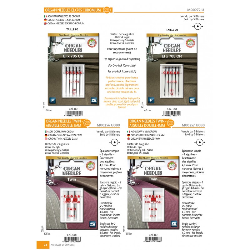 new ORGAN NEEDLES ELX705 CHROMIUM BOITE DE 5