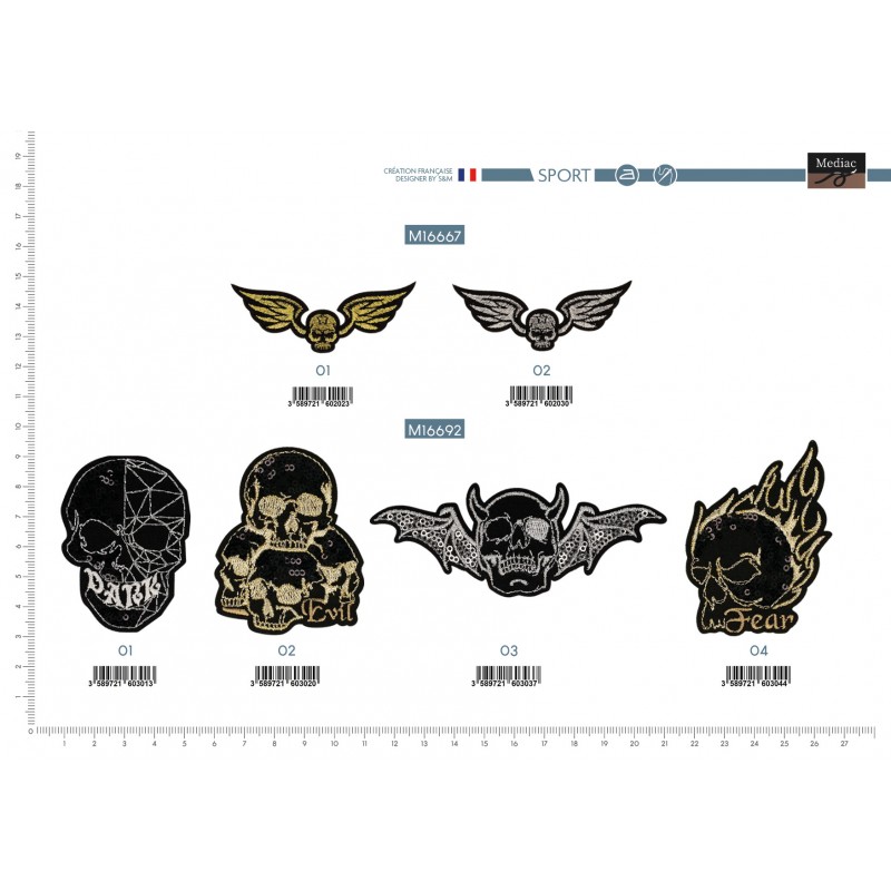 M16667 - S ECUSSON TETE DE MORT AVEC AILES