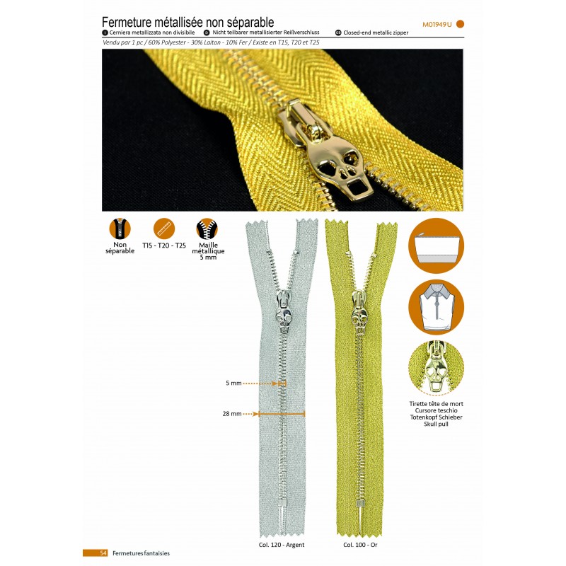 M1949 - FERMETURE METALLISEE CURSEUR TETE DE MORT NS