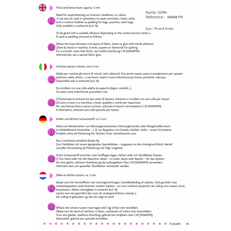 S50104 - E270N MOUSSE DE REMBOURRGE A COUDRE 270G/M2