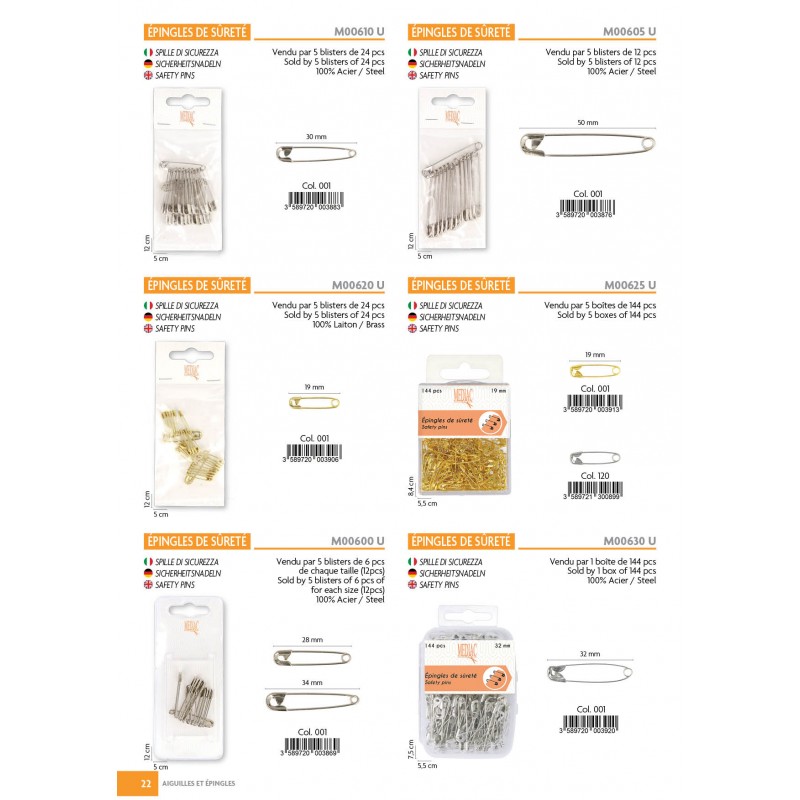 M630 - EPINGLE SURETE ACIER 32MM*144P