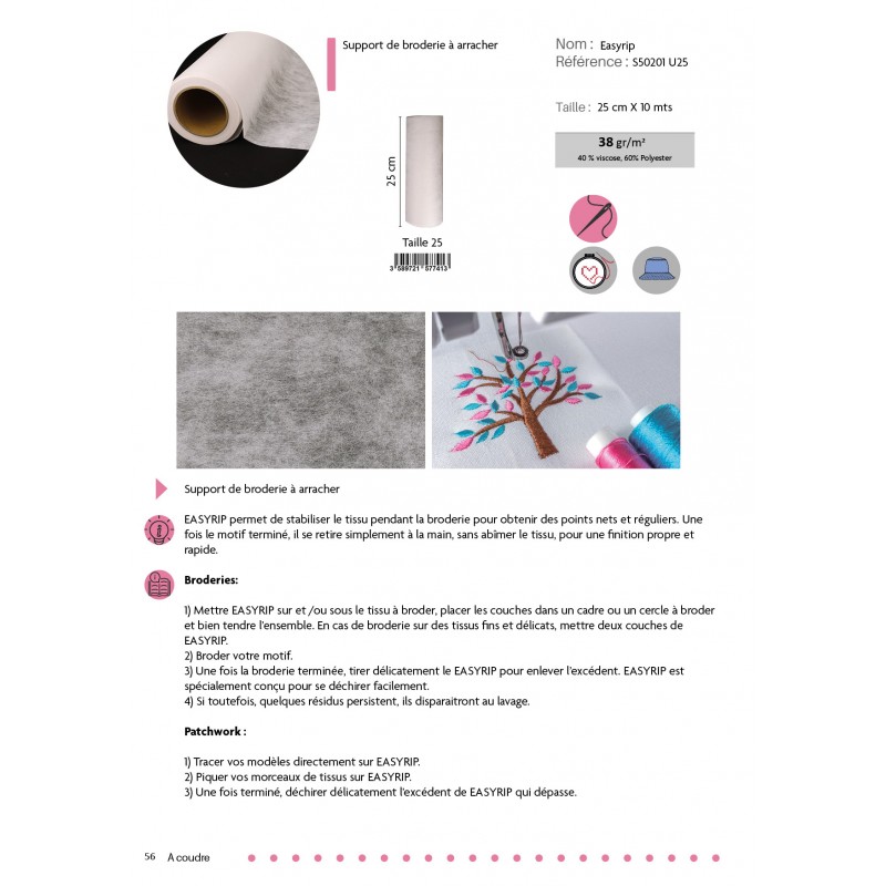 S50201 - SUPPORT DE BRODERIE A ARRACHER X 10MTS 38 G/M2