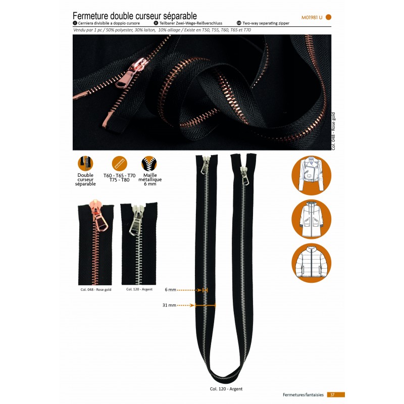M1981 - FERMETURE DOUBLE CURSEUR SEPARABLE