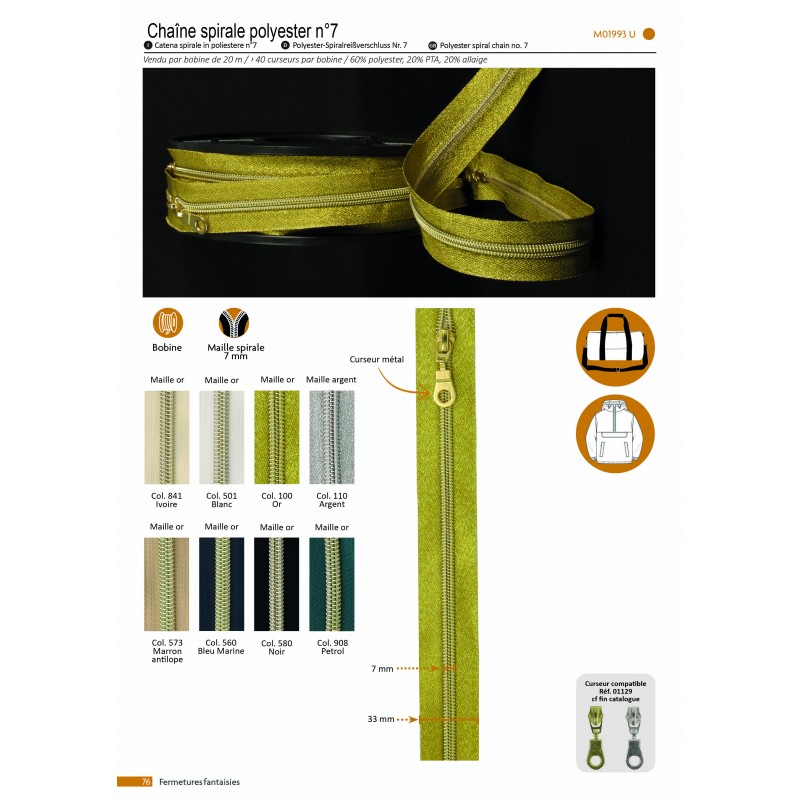M1993 - CHAINE SPIRALE N°7 DOREE/ARGENT