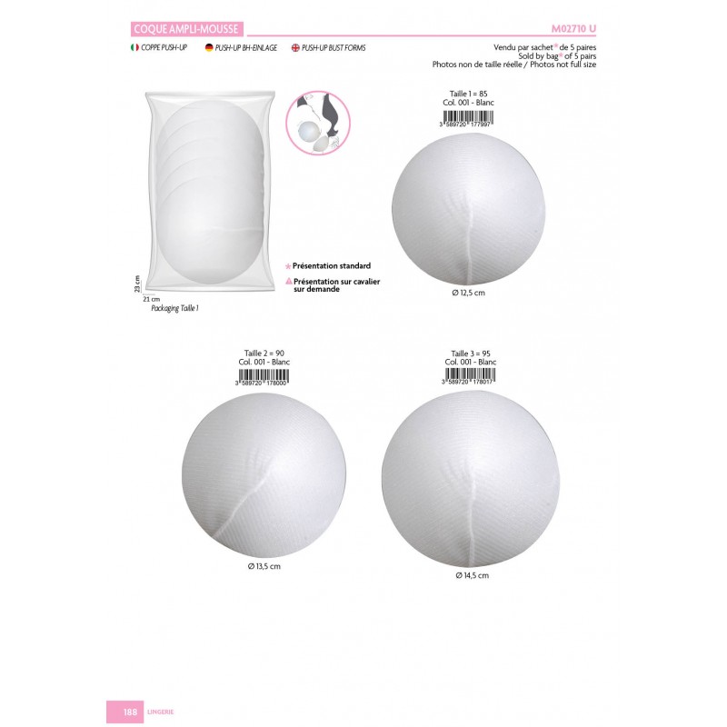 Le prix indiqué est à la pièce, une pièce représentant une paire de coques. Ces coques sont vendues par sachet de 5 paires. La présentation sur cavalier se fait sur demande