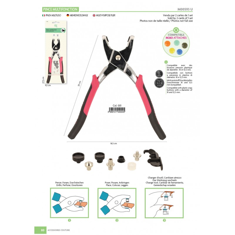 • Compatible with plastic snap buttons with a diameter of 10 and 12,5 mm.