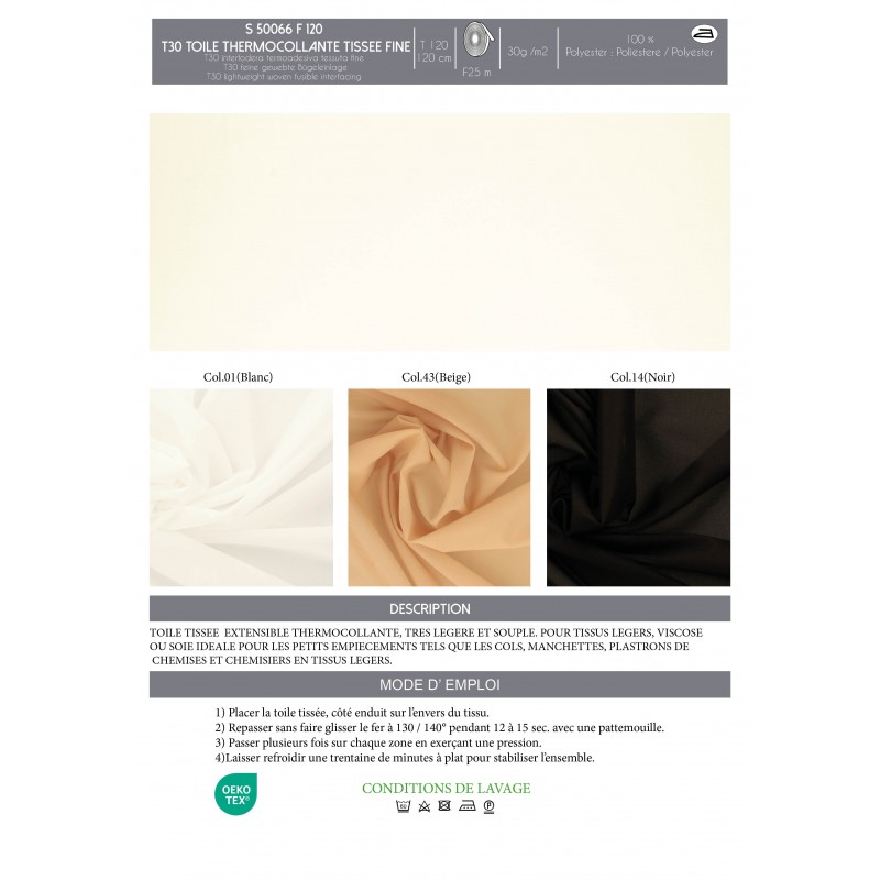 S50066 - T30 TOILE THERMOCOLLANTE TISSEE FINE 30 G/M2